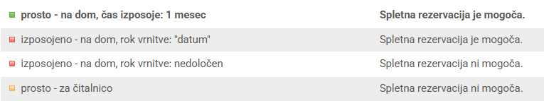- spletno ni mogoče rezervirati gradiva, izposojenega za nedoločen čas;